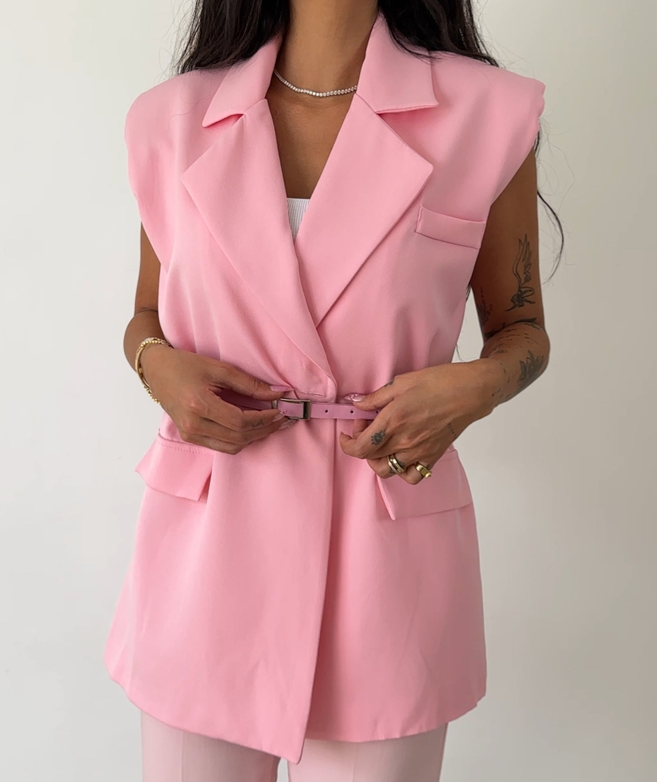 Belted Sleeveless Blazer Vest