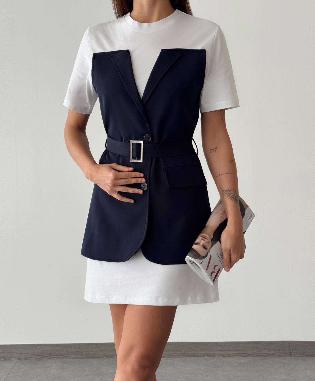 The dress can be worn on its own for a sleek, minimalist look, or paired with accessories to add your personal touch. Its high-quality cotton fabric ensures durability and a refined finish, making it a staple piece in your wardrobe.