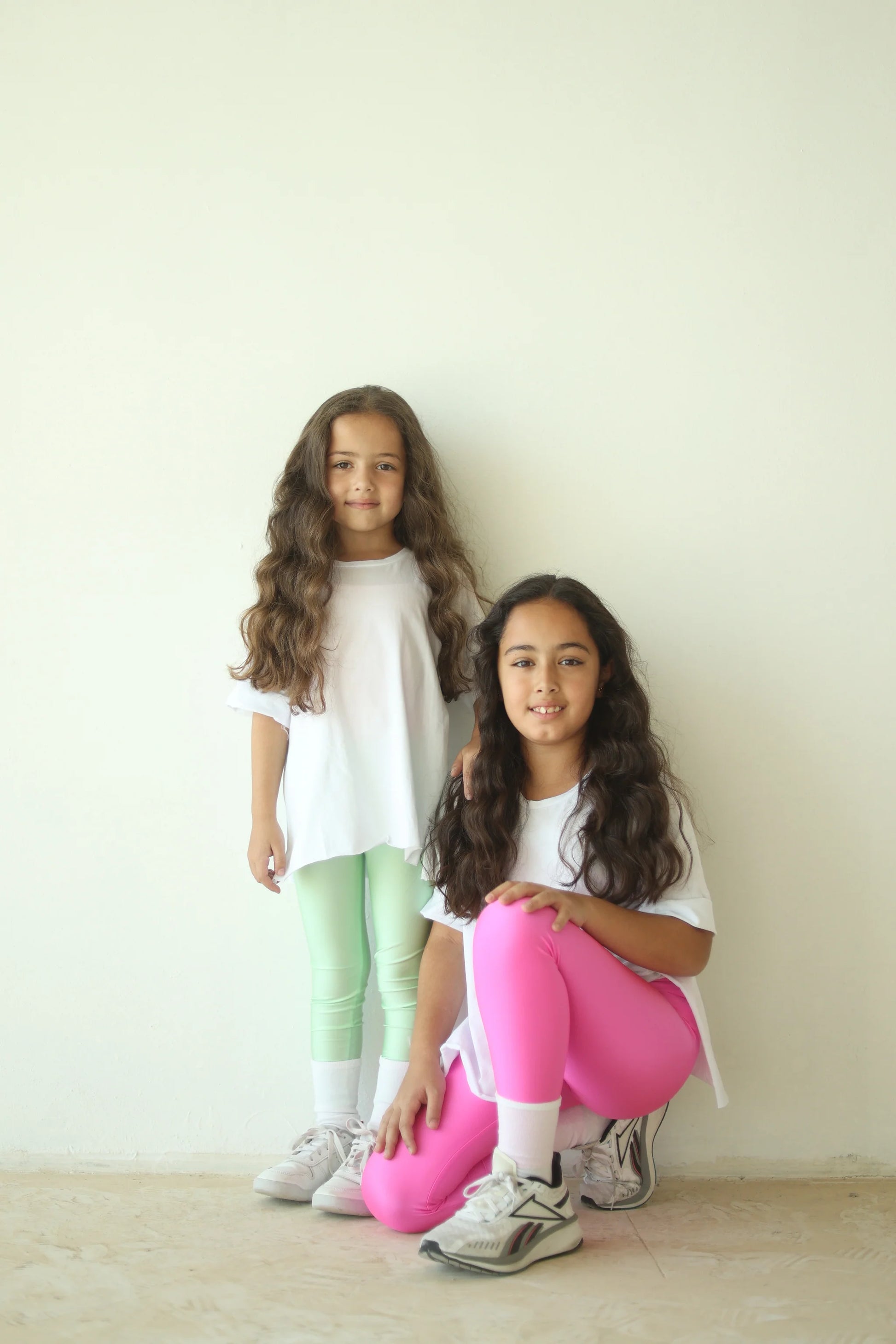 The new leggings Made from polyamide fabric, Cutie little leggings with a comfy elasticated waistband are perfect for gymnastics class or running around.