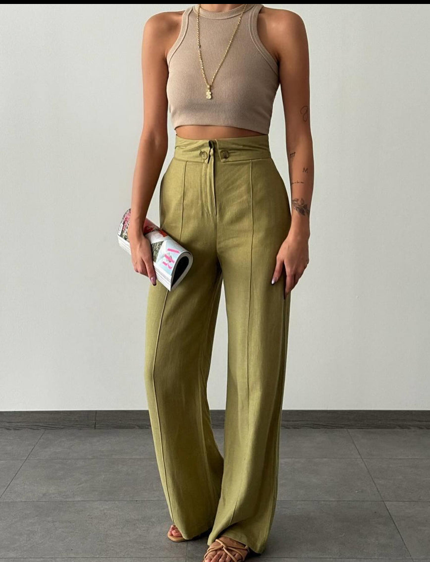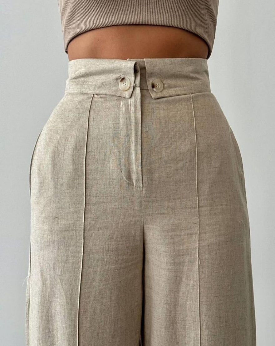 Linen Wide Leg Trouser - Buttoned