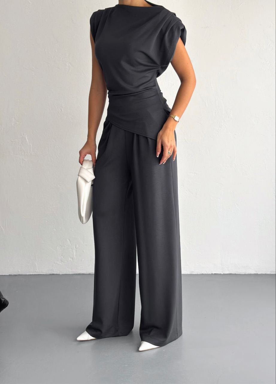 Lycra Cotton Padded Shoulder & Wide - Leg Pants Set