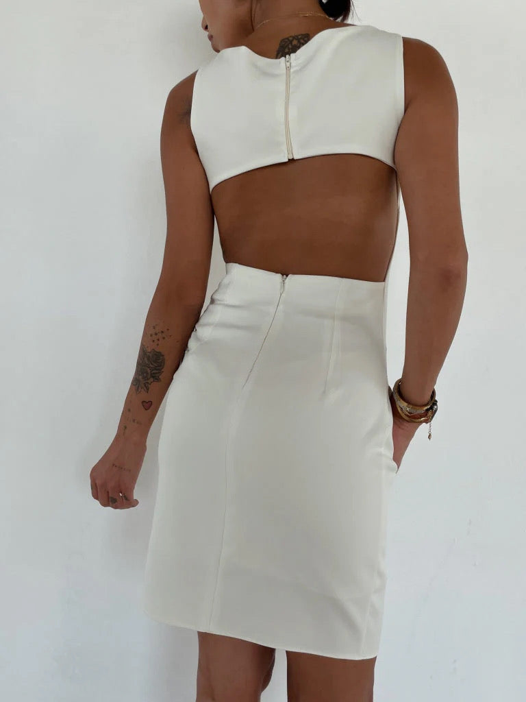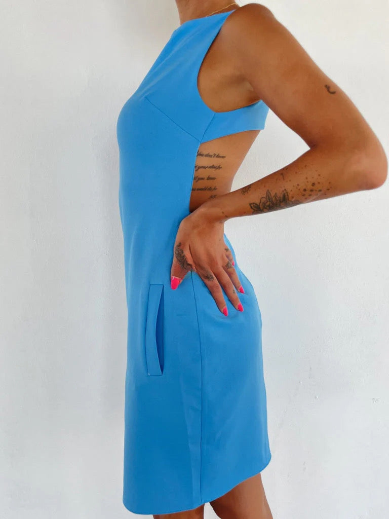 Slim Strap - Mini Length Dress - Back Zipper- Pockets