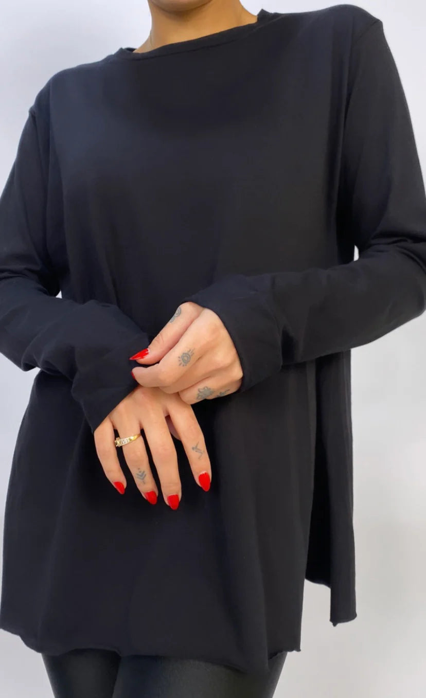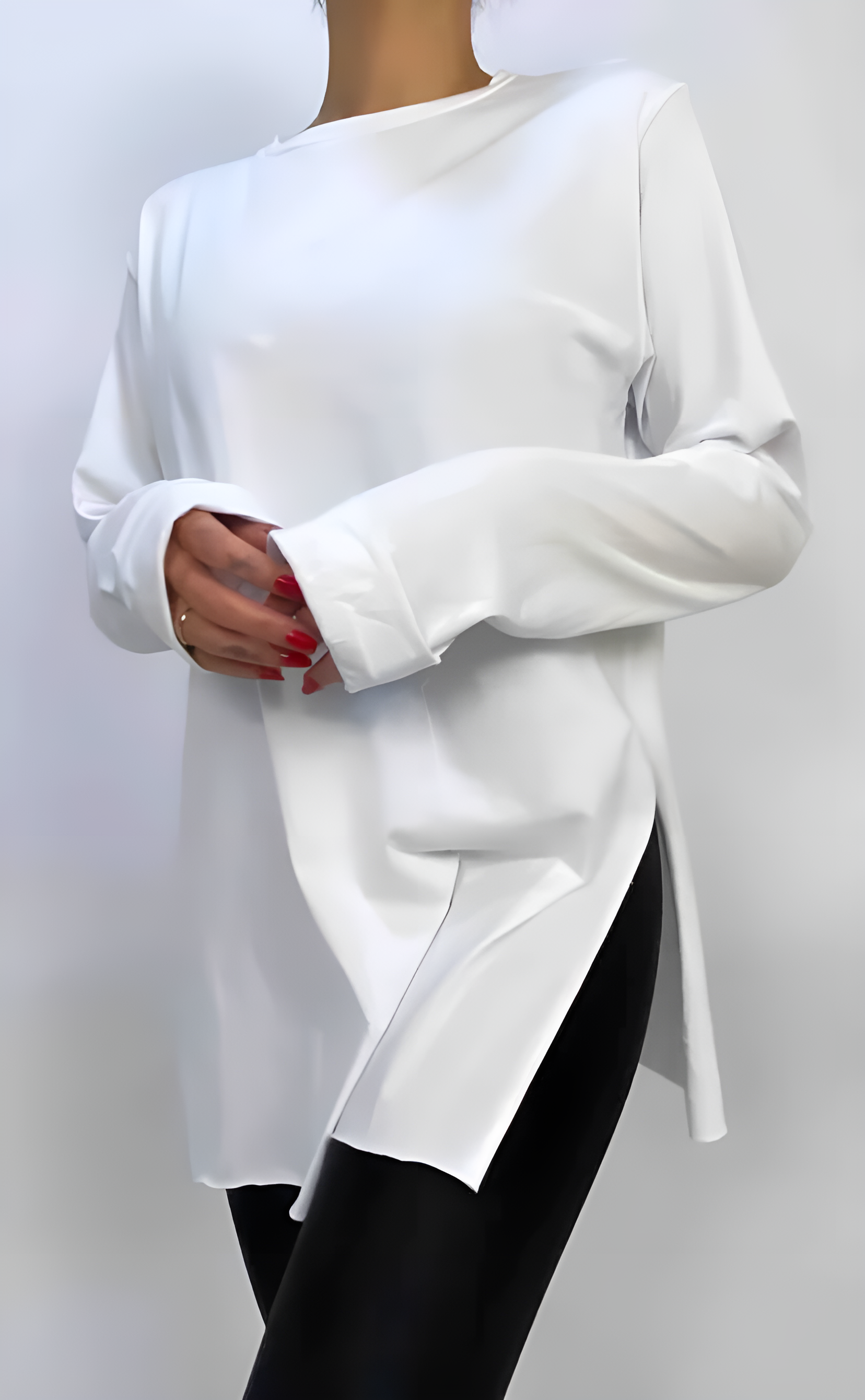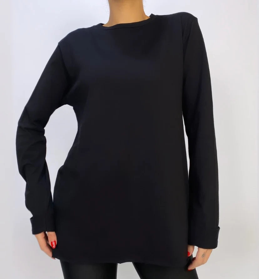 A long sleeve t shirt with round neck and Two Sides Slit.