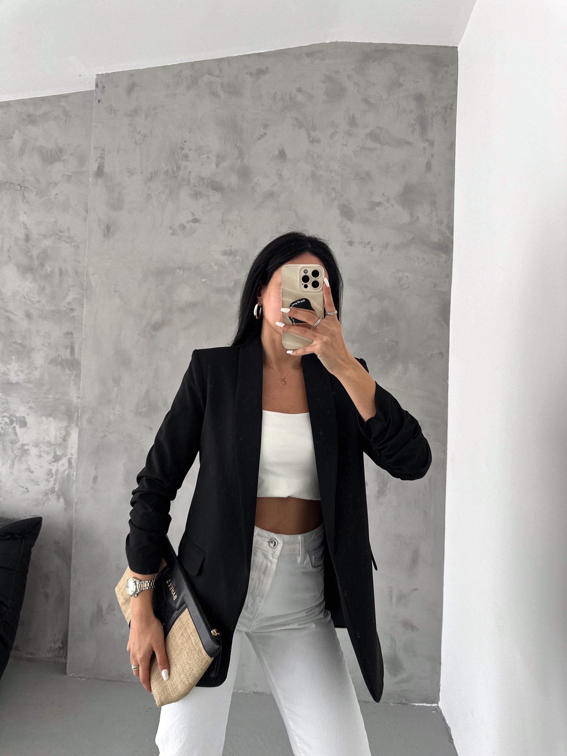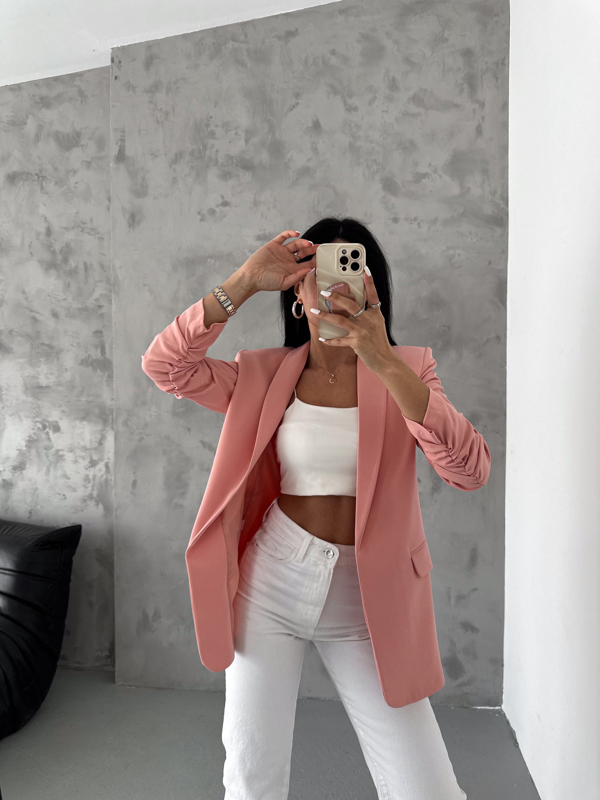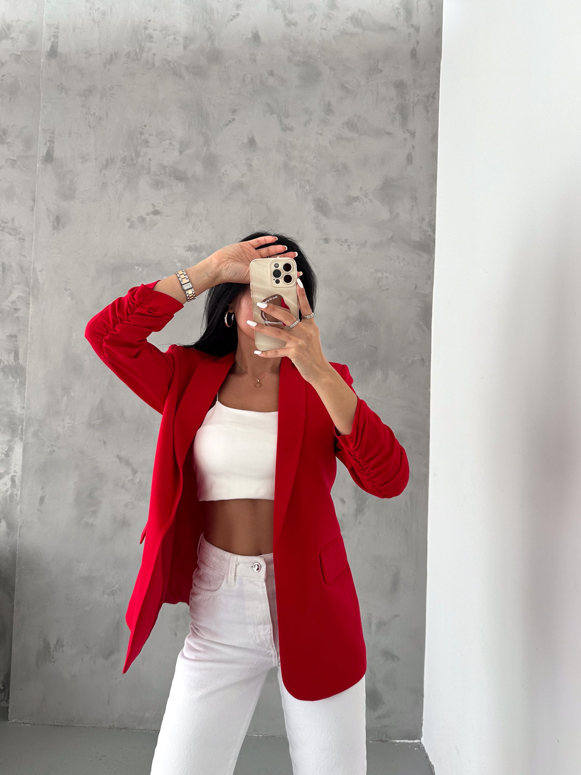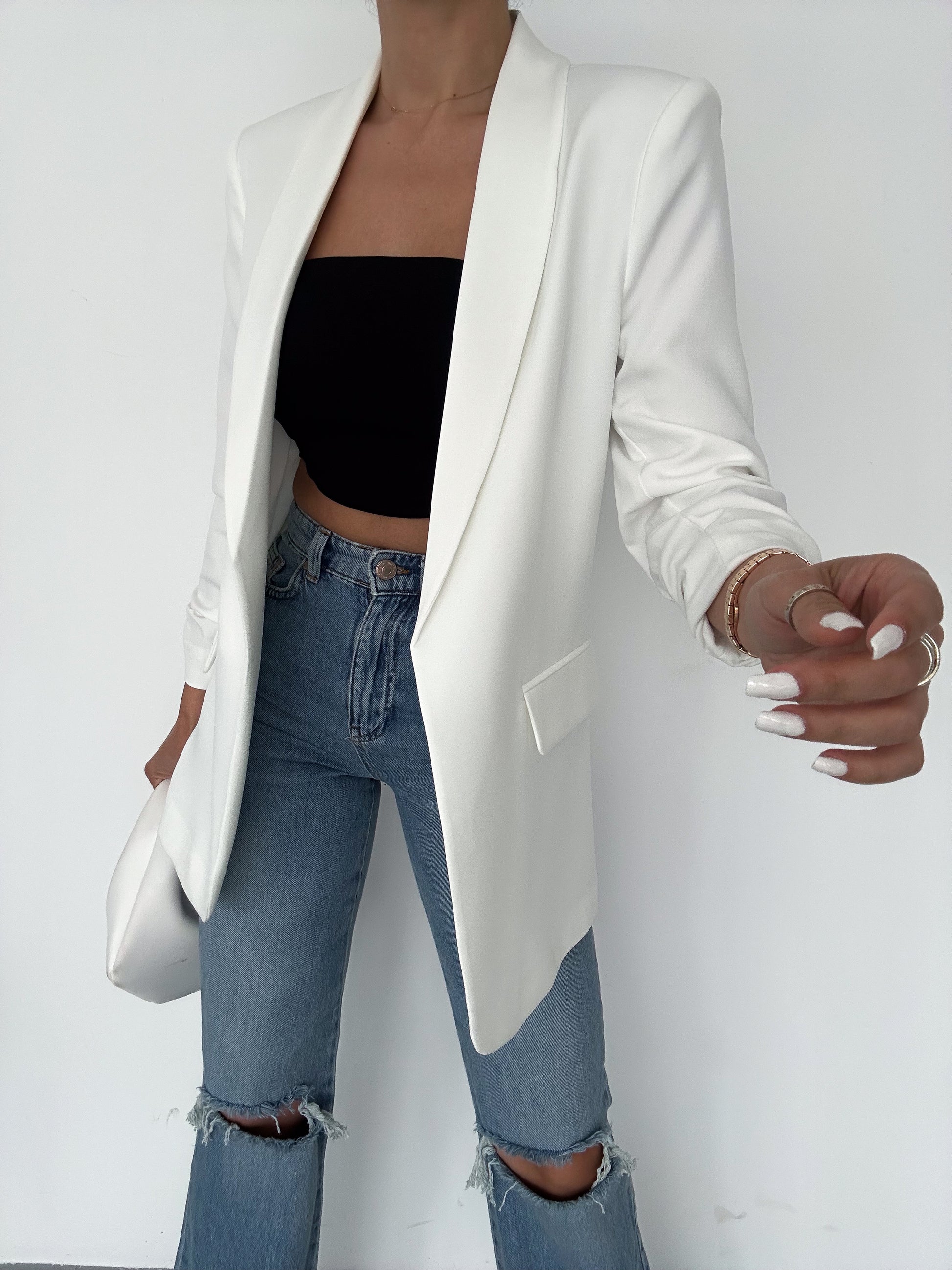 The chic Rolled-Up Sleeve Blazer. Designed for both style and comfort, this long blazer features a tailored fit that accentuates your silhouette. With its versatile design, it comes in six stunning colors, allowing you to mix and match effortlessly for any occasion.