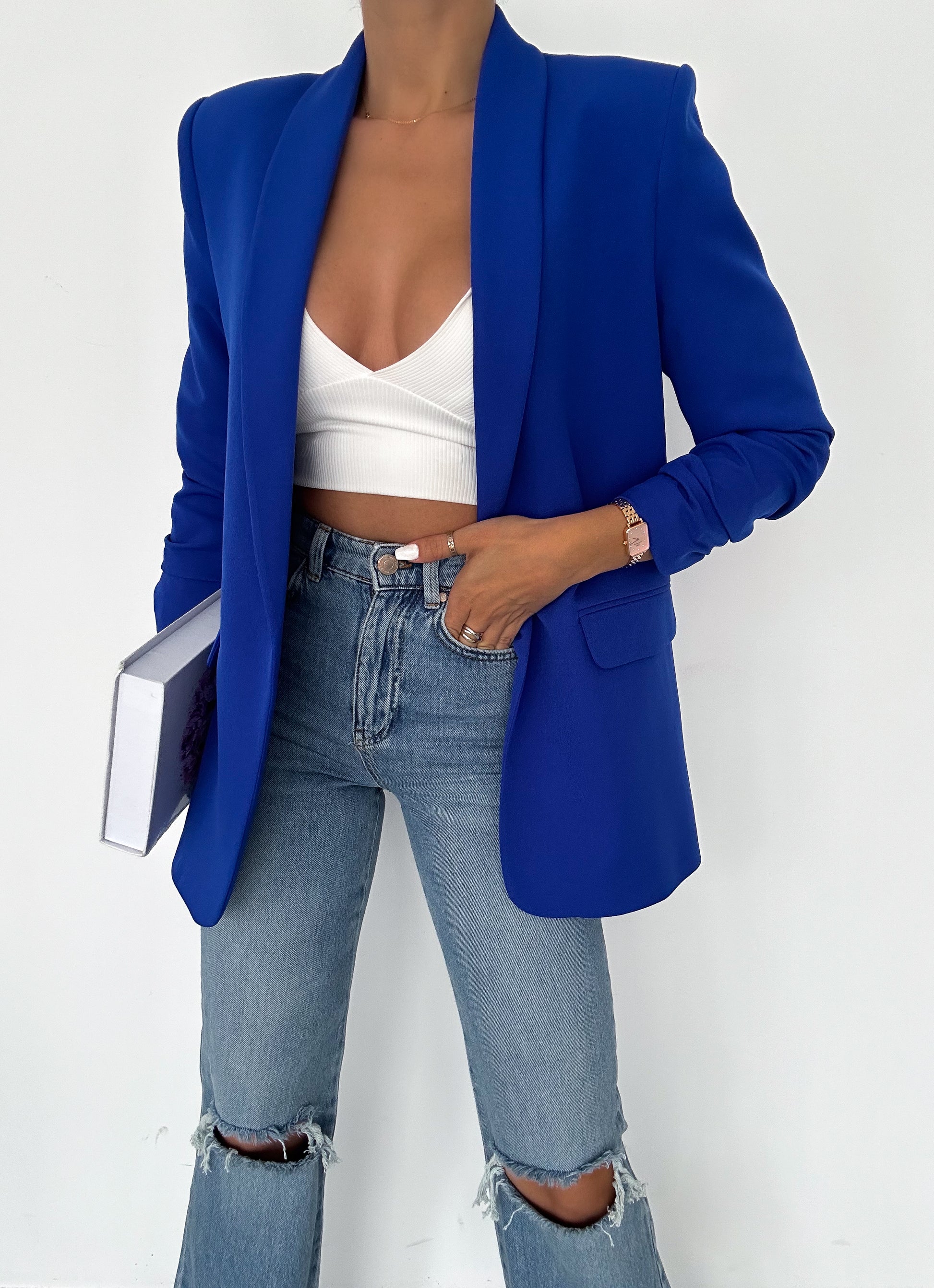 Rolled-up sleeve blazer
