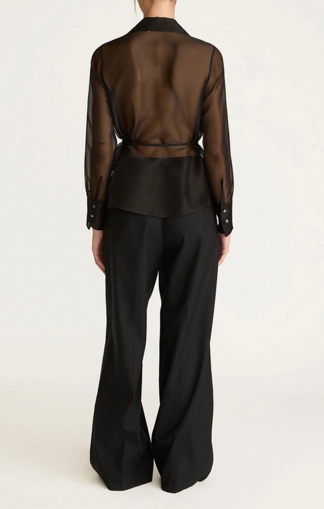 Elevate your style with our elegant Organza Wrap Shirt, featuring sheer long sleeves and a flattering wrap design that ties delicately at the waist. With no buttons or zippers, it’s easy to slip on and perfect for day or night looks. The soft, lightweight fabric drapes beautifully over the body for a polished, feminine silhouette.