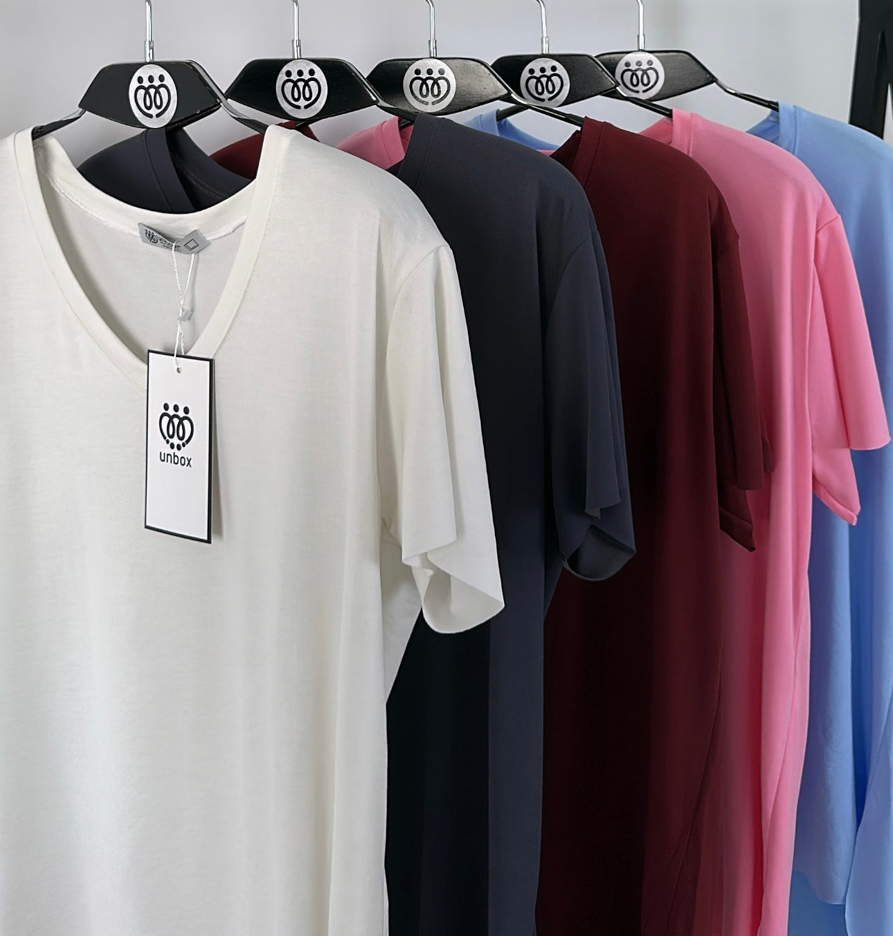 Indulge in effortless comfort and style with our Viscose V-Neck T-Shirt. Crafted from luxuriously soft viscose fabric, this loose-fitting tee drapes elegantly for a flattering silhouette. Available in three versatile colors - green, white, and black - it's the perfect addition to any wardrobe. Embrace comfort without compromising on style.